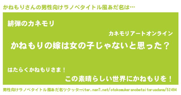 | 女子向けラノベタイトル風あだ名 | 『かねもり様がみてる』 |