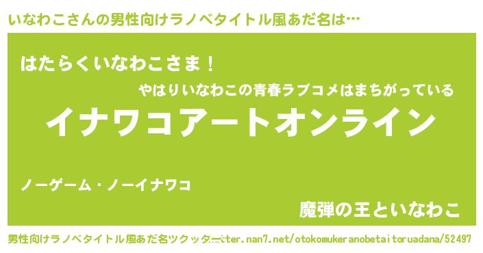 | 女子向けラノベタイトル風あだ名 | 『誰かこのいなわこを説明してください! ~契約から始まるウェディング~』 |