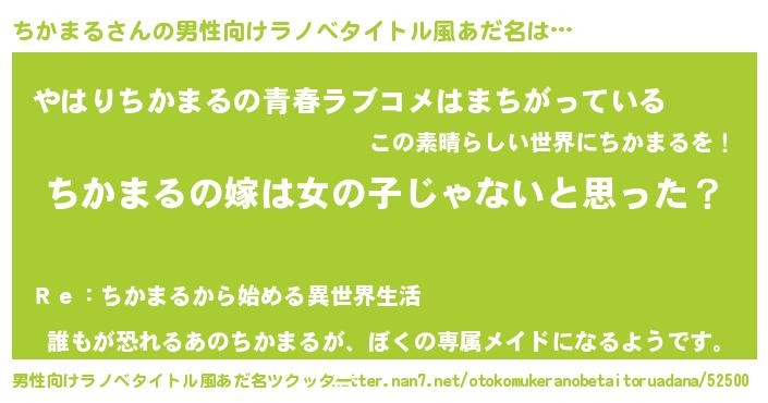 | 女子向けラノベタイトル風あだ名 | 『ちかまる様がみてる』 |