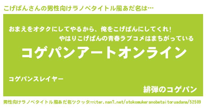 | 胡散臭い通販商品みたいなあだ名 | 『モテモテ間違いなしブレスレット…その名も「こげぱん」』 |
