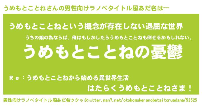 | 女子向けラノベタイトル風あだ名 | 『うめもとことね姫と円卓の騎士』 |