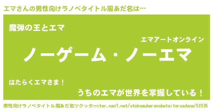| 女子向けラノベタイトル風あだ名 | 『死神エマの再婚』『エマ姫と円卓の騎士』 |