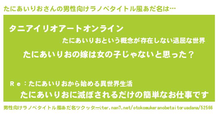 | 女子向けラノベタイトル風あだ名 | 『たにあいりおの卵を拾いまして』 |