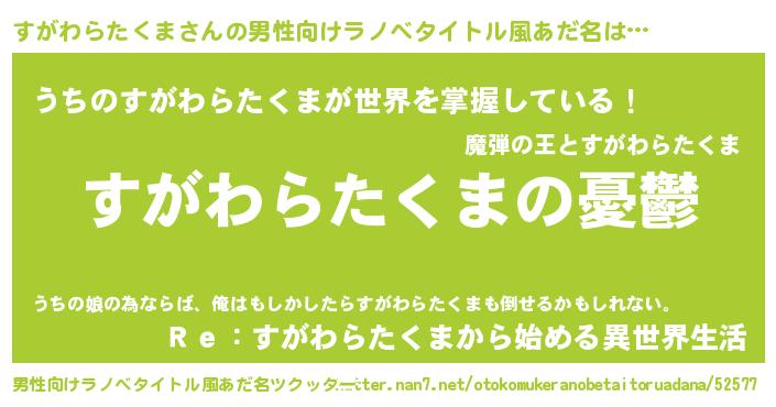 | 女子向けラノベタイトル風あだ名 | 『(仮)すがわらたくまのやんごとなき事情』 |