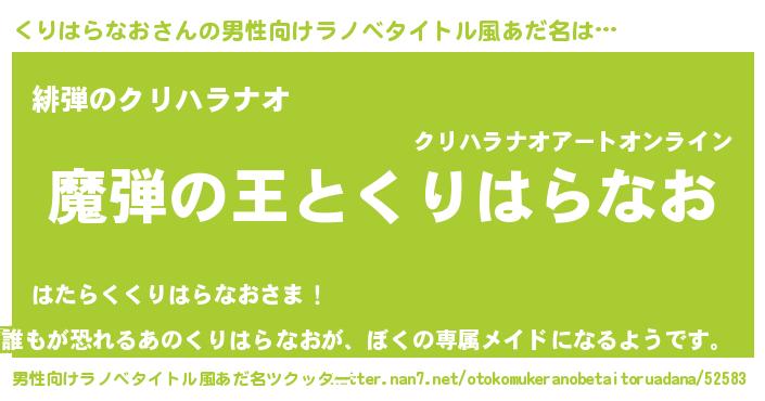 | 女子向けラノベタイトル風あだ名 | 『くりはらなおが死なない童話 林檎のくりはらなおの診療簿』 |