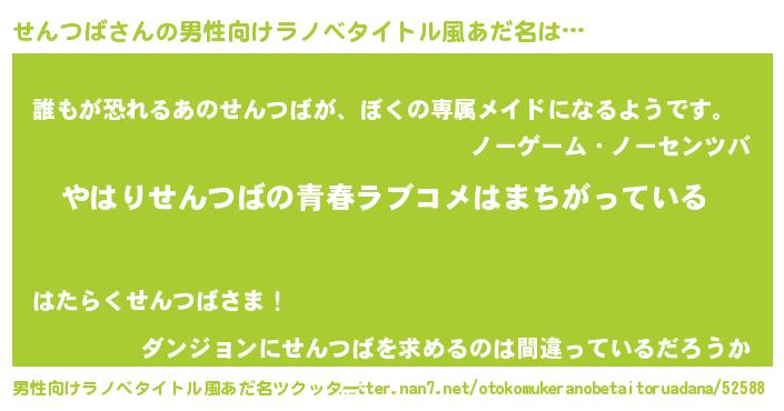 | 女子向けラノベタイトル風あだ名 | 『せんつば伯爵の花嫁』『せんつば恋絵巻』 |