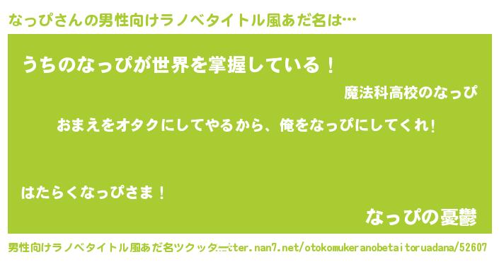 | 女子向けラノベタイトル風あだ名 | 『なっぴ夫妻のなれそめ』 |