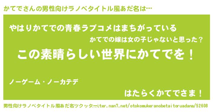 | ヘコむあだ名 | 『なまこ酢』『かてお』『かてで(笑)』 |
