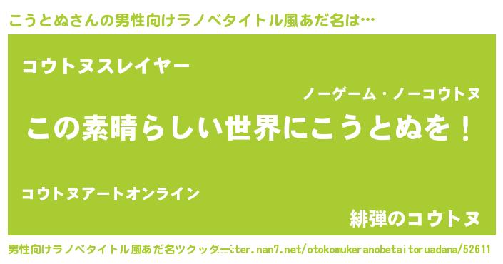 | 意味不明あだ名 | 『住所不定無職こうとぬ(13歳)』 |