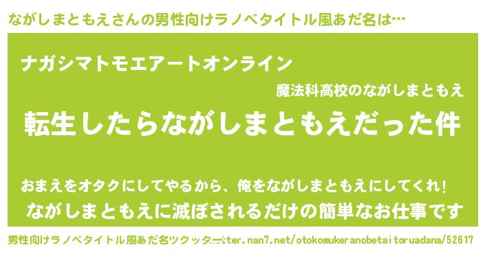 | 胡散臭い通販商品みたいなあだ名 | 『モテモテ間違いなし霊験あらたかなお札…その名も「ながしまともえ」』 |