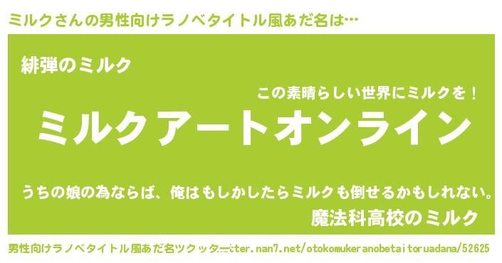| ヘコむあだ名 | 『ミルにゅー』『牛乳』『ミルク(笑)』 |