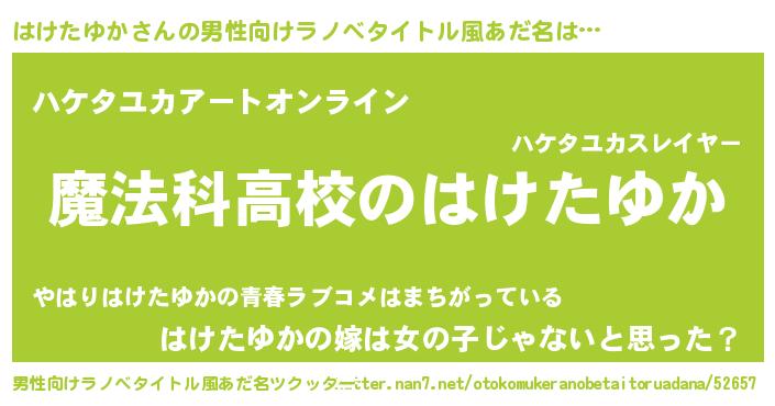 | 女子向けラノベタイトル風あだ名 | 『はけたゆかなんてお断りですっ。』 |