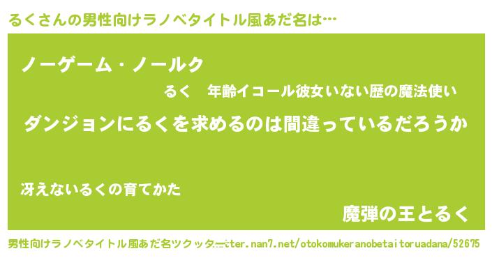 | 女子向けラノベタイトル風あだ名 | 『るくは平凡を望む』『死神るくの再婚』 |