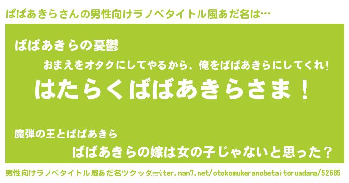 | 胡散臭い通販商品みたいなあだ名 | 『必ず成功する霊験あらたかなお札…その名も「ばばあきら」』 |