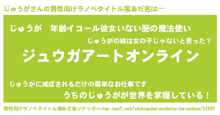 | 胡散臭い通販商品みたいなあだ名 | 『モテモテ間違いなし霊験あらたかなお札…その名も「じゅうが」』 |