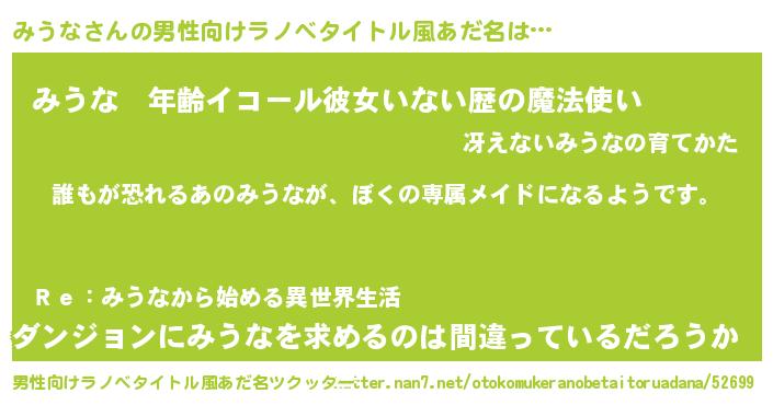 | ヘコむあだ名 | 『みうな(笑)』『みうっ子』 |