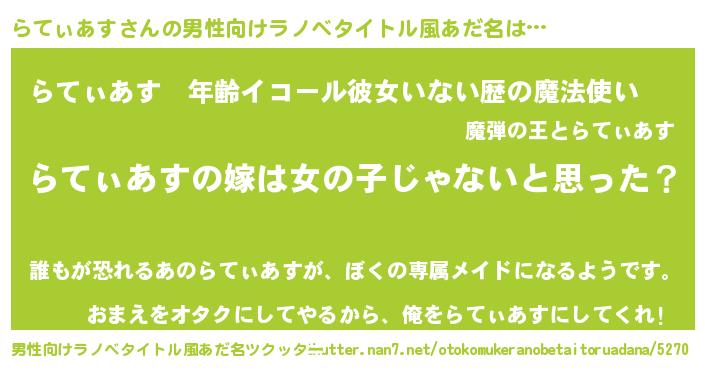 | 女子向けラノベタイトル風あだ名 | 『らてぃあすの卵を拾いまして』 |