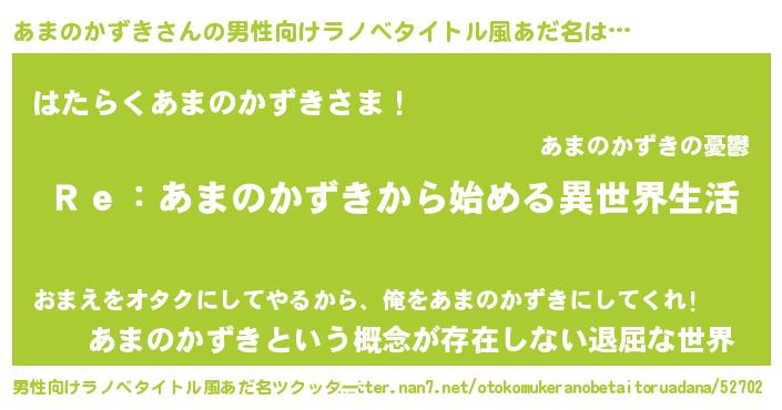 | 女子向けラノベタイトル風あだ名 | 『あまのかずきストレイドッグス』 |