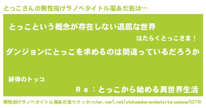 とっこさんの男性向けラノベタイトル風あだ名をツクッター!