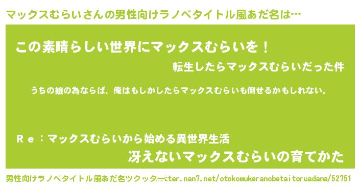 | 女子向けラノベタイトル風あだ名 | 『マックスむらいの婚約者』 |