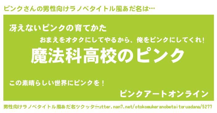 | 女子向けラノベタイトル風あだ名 | 『ピンクなんてお断りですっ。』 |