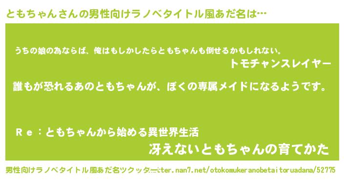| 胡散臭い通販商品みたいなあだ名 | 『前代未聞の健康食品…その名も「ともちゃん」』 |
