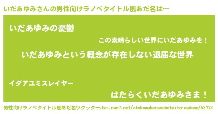 | 女子向けラノベタイトル風あだ名 | 『異世界で失敗しない100のいだあゆみ』 |