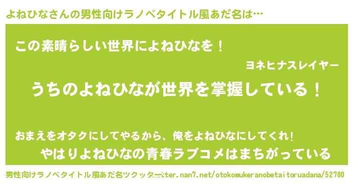 | 意味不明あだ名 | 『住所不定無職よねひな(5歳)』 |