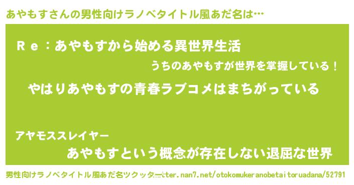 | 女子向けラノベタイトル風あだ名 | 『あやもすの雑貨屋さん』 |