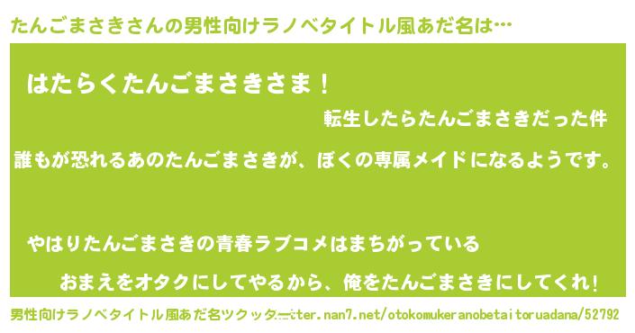 | 胡散臭い通販商品みたいなあだ名 | 『来世でも幸せになれる健康食品…その名も「たんごまさき」』 |