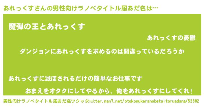 | 胡散臭い通販商品みたいなあだ名 | 『信頼と実績のペンダント…その名も「あれっくす」』 |