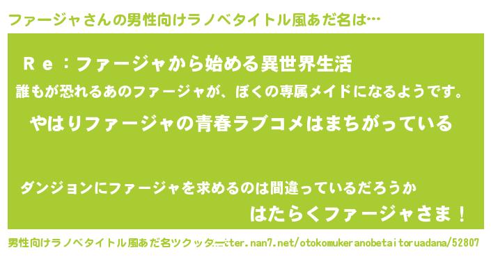 | 女子向けラノベタイトル風あだ名 | 『ファージャ伯爵の花嫁』 |