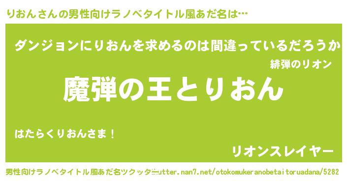 | 女子向けラノベタイトル風あだ名 | 『乙女ゲームの破滅フラグしかない悪役りおんに転生してしまった…』 |