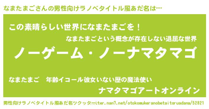 | ヘコむあだ名 | 『なまにー』『なまたまご(爆)』 |