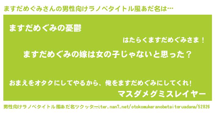 | 女子向けラノベタイトル風あだ名 | 『ますだめぐみ様がみてる』 |