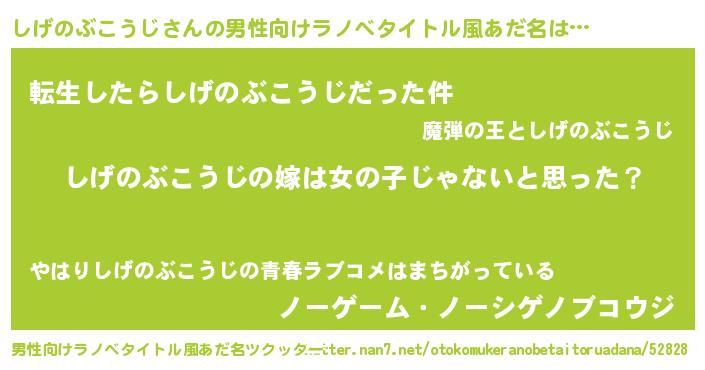 | 女子向けラノベタイトル風あだ名 | 『しげのぶこうじ様がみてる』 |