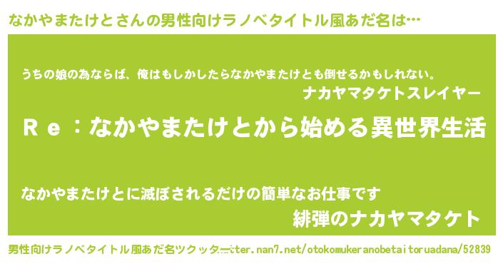 なかやまたけとさんの男性向けラノベタイトル風あだ名をツクッター!