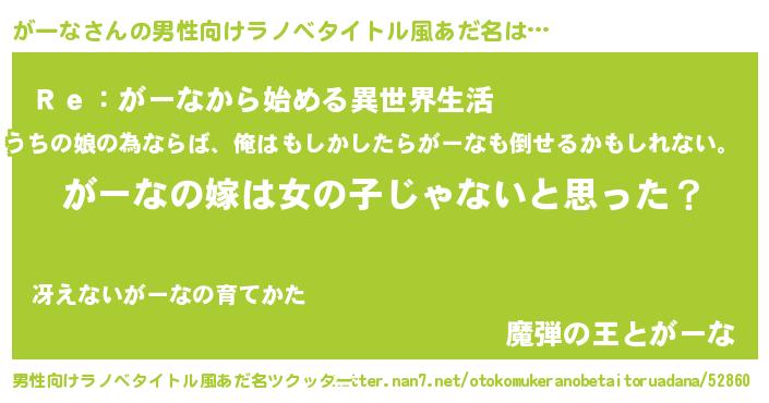 | 女子向けラノベタイトル風あだ名 | 『がーな様がみてる』『がーなの婚約者』 |