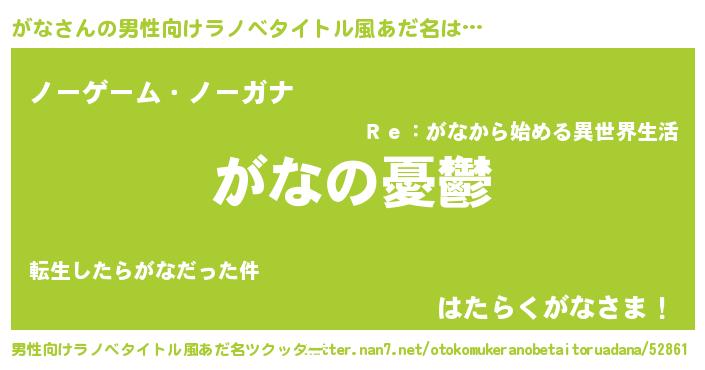 | 女子向けラノベタイトル風あだ名 | 『(仮)がなのやんごとなき事情』 |