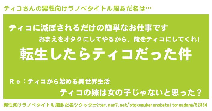| 意味不明あだ名 | 『たけのこ科ティコ属』『自称ティコ』 |