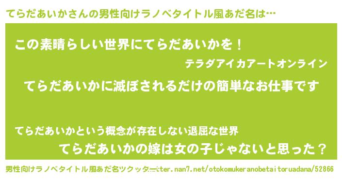 | 胡散臭い通販商品みたいなあだ名 | 『世界中を虜にした100年もののヴィンテージワイン…その名も「てらだあいか」』 |