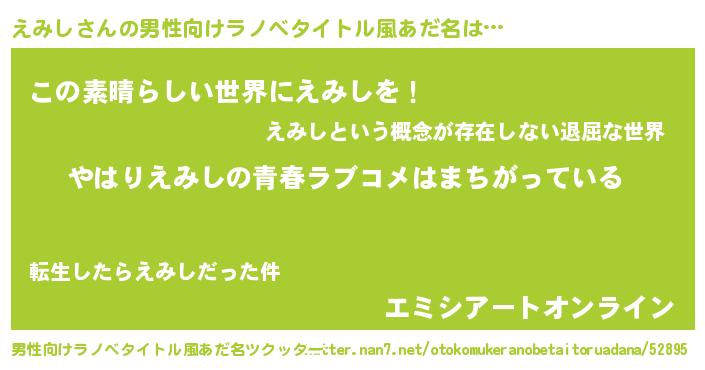 | ファンタジー風あだ名 | 『エターナルエミシー』『ヴァルエミーナ』 |