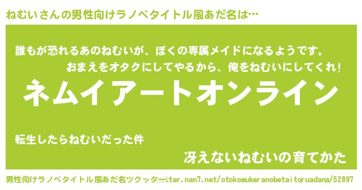 | ヘコむあだ名 | 『ねむにゅー』『ねむい(震え声)』 |