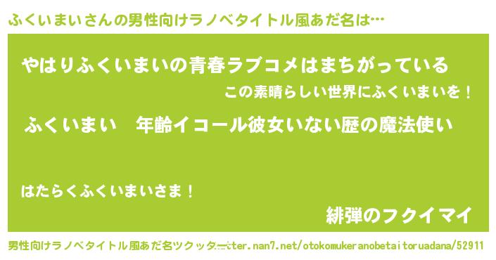 | 女子向けラノベタイトル風あだ名 | 『ふくいまいの玉の輿計画!』 |