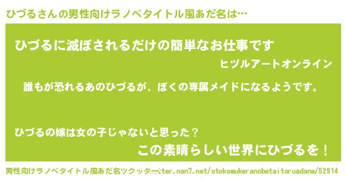 | 胡散臭い通販商品みたいなあだ名 | 『前代未聞の健康食品…その名も「ひづる」』 |
