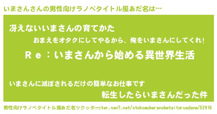 | 女子向けラノベタイトル風あだ名 | 『いまさんストレイドッグス』 |