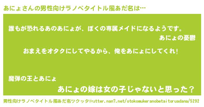 | ヒーロー風カッコイイあだ名 | 『正義の使者あにょ』『ネオアニョ』 |