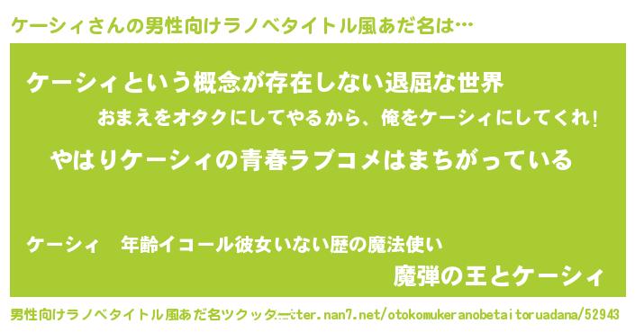 | 女子向けラノベタイトル風あだ名 | 『ケーシィの雑貨屋さん』 |