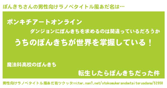 ぽんきちさんの男性向けラノベタイトル風あだ名をツクッター!