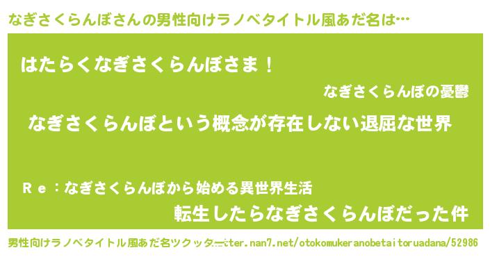 | 意味不明あだ名 | 『永久保存なぎさくらんぼ』 |
